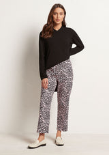 The Crop Shell Pant from Mela Purdie features a comfort fit elastic waist and cropped leg that falls to mid-calf. This pant is crafted from Mela's Popilene fabrication, a crisp stretch cotton in the fun yet sophisticated Paw Print.