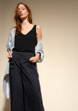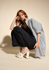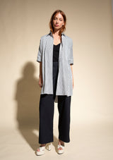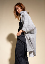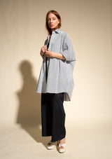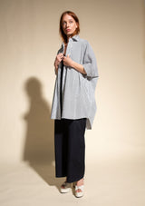 The Cabana Shirt from Mela Purdie is generously proportioned through the body with a classic shirt collar, a short sleeve with a cuffed hem and single patch pocket detailing on the front. The cool and relaxed fit makes this the perfect shirt to wear over slim pants or open as an over-shirt. This oversized shirt is crafted from Mela's Popilene fabrication; a structured, stretchy, cotton-rich blend with a flattering drape and luxurious hand feel.