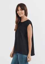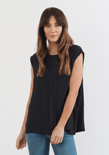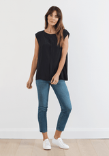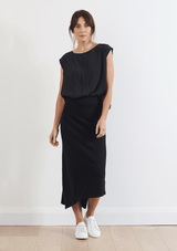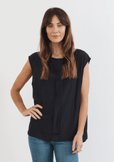 The Pleat Shell from Mela Purdie is the wardrobe staple you’ve all been looking for. Featuring cap sleeves, round neckline, pleat detailing down the front and a relaxed box shape silhouette. Crafted from Mela’s newest addition to the technical polyester family; Macro-Mousseline. In a thicker weight, the Macro-Mousseline fabrication offers optimal drape and ease of care.