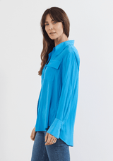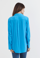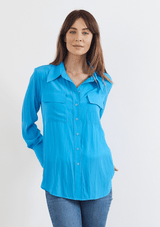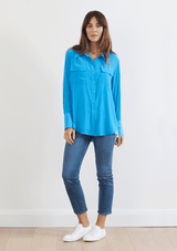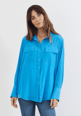 Every wardrobe needs the perfect shirt; and Mela Purdie has designed the perfect option. Featuring double front patch pocket detail, Button front with shirt collar and Full-length sleeve with large cuffs for added detail. Cut for a classic relaxed fit and crafted from Mela’s newest addition to the technical polyester family; Macro-Mousseline. In a thicker weight, the Macro-Mousseline fabrication offers optimal drape and ease of care.