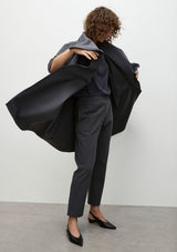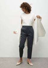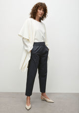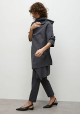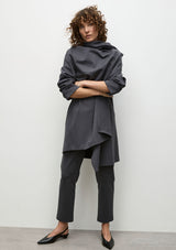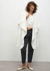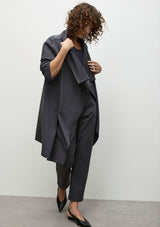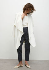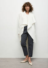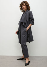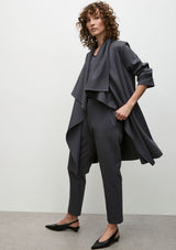 Crafted from our firm stretch, double knit Polished Ponte. The Plaza Duster combines a soft front opening and fold over shawl for seasonal layering