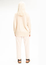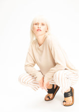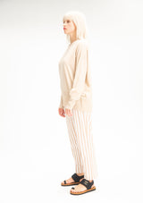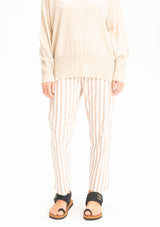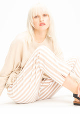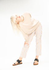 The Crop Shell Pant by Mela Purdie features a comfort fit elastic waist and cropped leg that falls to mid-calf. This pant is crafted from Mela's Popilene fabrication, a crisp stretch cotton in Ribbon Stripe, a classic neutral stripe.
