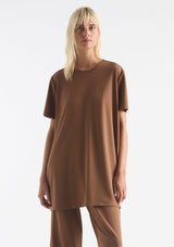 The Maxi Top from Mela Purdie features a crew neckline, short sleeves and a longer length with splits at the side seams and an A-line hem design. Crafted from Mela Purdie's matte Powder Knit, this versatile top will make a fresh addition to your everyday wardrobe.