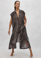 The Slice Dress from Mela Purdie features a sleeveless design with a shirt collar, concealed front placket with button closure and side slits. This versatile dress can also be worn open as a duster. Crafted from Mela's Silk Crepe De Chine, a luxuriously lightweight silk boasting a sumptuous soft handle, matte surface and beautiful drape.