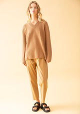 The Puff Rib Sweater from Mela Purdie features a v-neckline, drop shoulders, long sleeves and a relaxed body. Puff Rib Merino offers a luxuriously soft surface and subtle rib detailing, knitted from Merino Wool for warmth and comfort.