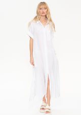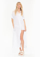 The Cuff Sleeve Dress from Mela Purdie features a crisp collar with centre front button closure, single patch pocket detail, cuffed short sleeves to encourage a roll up look and a relaxed silhouette. This long line dress falls beautifully on the body, with ideal coverage and side splits at the hem offering a polished yet casual finish. Crafted from high quality European linen, with a hint of texture and a beautiful light airy feel, a contemporary addition to your summer wardrobe.