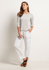 The Pure Linen Soft Cargo Pant ensure comfort of fit with the soft elastic waist, draping cargo style pockets and tabs to roll up the outer leg. This pant is the staple on high rotation through all seasons. Crafted from high quality European linen, with a hint of texture and a beautiful light airy feel.