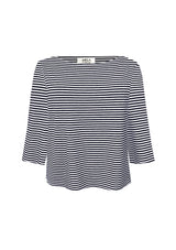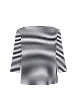 The Mela Purdie Relaxed Boatneck features a softly scooped boat neckline and 3/4 length sleeves. This style falls to the hip and is crafted from Regatta Stripe Jersey, offering comfort, durability and stretch