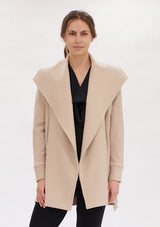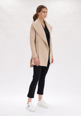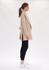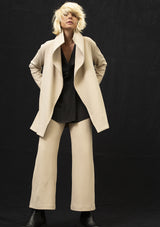 The Mela Purdie Pull On Trench features statement lapel front, long sleeves and relaxed silhouette. This trench is crafted from Ridge Knit; a new fabric for the autumn winter collection offering stretch, comfort and texture,