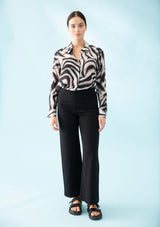 The Satellite Animal Print Soft Shirt by Mela Purdie features a classic shirt collar, concealed front button closure, full length sleeves with shirt cuffs and a back yoke with pleat detailing. Silk Crepe De Chine is Mela's luxuriously lightweight printed Silk, boasting a sumptuous soft handle, matte surface and beautiful drape.