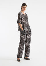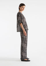 The Savoy Pant from Mela Purdie features an elasticated waist, pockets at hips and a standard rise with a tapered, full-length silhouette. Crafted in the exclusive Savoy Animal Print, Silk Crepe De Chine is Mela's luxuriously lightweight printed silk, boasting a sumptuous soft handle, matte surface and beautiful drape.