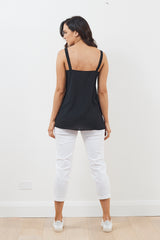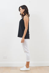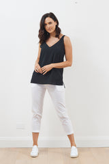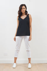 This Mela Purdie Savoy Sapphire Tank features a soft V neckline, strap back, small slit on the bottom side seam, and a slightly longer hemline at the back. Crafted from Mela's fabrication Savoy; a platinum and polished handle, that while looking modern, will never date in your wardrobe.