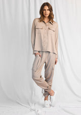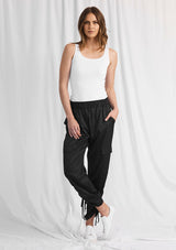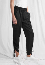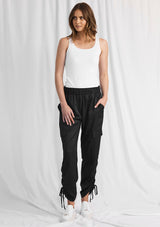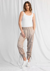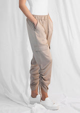 The Savannah Pant by Mela Purdie features in the Shimmer Twill fabrication. This relaxed fit pant has a mid-rise elastic waistband, pockets and ruching on the side. The Shimmer Twill fabrication is a non-stretch fabrication that has a soft handle and shimmer finish.