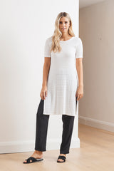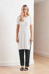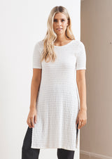 The Mela Purdie Caf̩ Tabbard is a wardrobe investment. This effortlessly versatile piece is crafted from new season Shirred Mesh, cut from the perfect combination of viscose and cotton. Durable and comfortable, the Caf̩ Tabbard is ideal for travelling and everyday wear. The Caf̩ Tabbard features a scooped neckline, short fitted sleeves, side splits and falls to the knee.