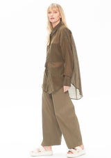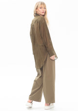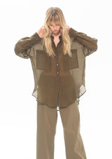 The Double Pocket Shirt from Mela Purdie features a classic shirt collar with button down front opening, double pocket detail on front, full-length sleeves with cuffs and a scooped hemline. Silk Cotton Voile provides a Cotton air with a silky touch, floating like whipped cream with a sheen lustre and beautiful drape.