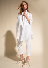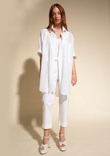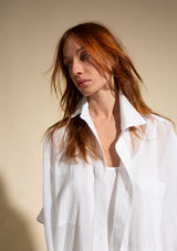 The Havana Blouse from Mela Purdie is generously proportioned through the body with a classic shirt collar, a short sleeve with a cuffed hem and detailed with two soft patch pockets. This oversized shirt is crafted from Silk Cotton Voile, providing a Cotton air with a silky touch, floating like whipped cream with a sheen lustre and beautiful drape