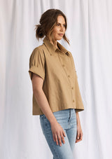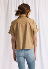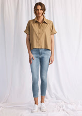 The Soft Savannah Shirt from Mela Purdie features a button up collar, short sleeves and a relaxed silhouette throughout the body. This designer top is crafted from Mela’s stretch fabrication, Microprene.
