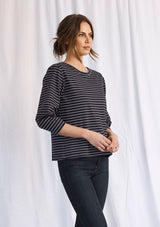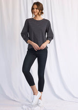 The Dune Sweater by Mela Purdie has been designed in St Barts Stripe Compact Knit. This designer top features a crew neckline, structured balloon sleeves that taper at the wrist and a relaxed body.