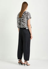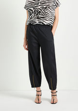 The Crop Club Pant from Mela Purdie features an elasticated waistband, hip pockets, seam detail through the barrel legs and an elasticated cuff with zipper detail at hem. This versatile pant is crafted from Mela's Stretch Chintz fabrication, a refined micro stretch twill weave. Cool to touch with a subtle sheen and polished finish.
