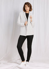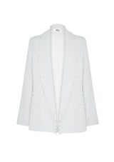 The Curve Blazer has been crafted in Mela Purdie’s Stripe Crepe Double Knit fabrication. It features in a minimalist tailored design with exaggerated collar and long sleeves for the perfect finish.
