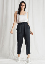 The Soft Capri Pant has been crafted from Mela Purdie’s non-stretch fabrication, Supreme Satin. The Soft Capri features in a relaxed tapered leg design, with pockets and a gathered elastic waistband that sits on the hips.