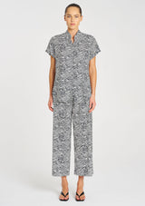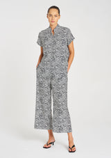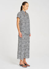 Crafted with Mela Purdie’s smooth fluid stretch Charmeuse fabrication in the classic geometrical Terrain Print. The Stand Shirt features a stand collar and a curved hemline. This is a timeless silhouette to wear day to night.