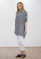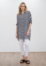 The Cabana Shirt by Mela Purdie features a collar with a button down front opening, single patch pocket detail and ¾ sleeves. This oversized shirt is crafted from 100% Silk, a non stretch fabrication.