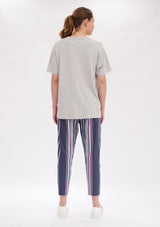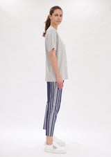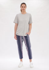 The Nomad Trinity Stripe Pant is crafted from Microprene, a stretch fabrication. Designed in a 7/8th length with pockets, tapered leg and an easy flat fit elastic waist to give you that extra comfort.