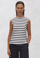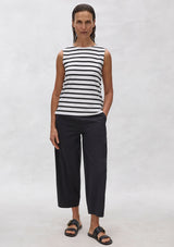 The Palazzo Shell from Mela Purdie features a sleeveless design with a high rounded neckline, straight hemline that falls to the upper hip and small split sides. This is a must have essential for every wardrobe, offering optimal comfort and stretch. Crafted from a mid-weight knit jersey fabrication in the timeless Trunk Stripe.