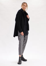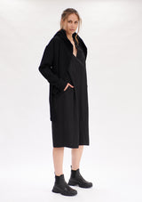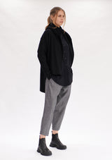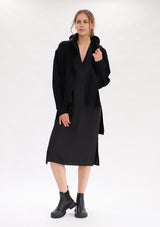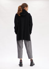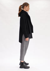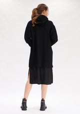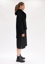 The Mela Purdie Rib Hood Jacket is crafted in the new tube rib fabric; a viscose high stretch blend with a smooth matte dry handle. The extreme rib creates visual drama and textural difference. The Rib Hood Jacket fits firm on the full length sleeves and comfortably on the shoulders and hood. The body allows for movement, with a dramatic side split hem and longer length at the back, this jacket does not require fastenings as it is designed to wear open.