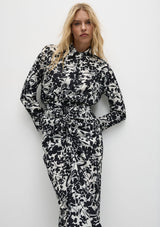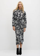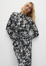 The Soft Shirt offers timeless silhouette crafted with Mela Purdie’s Tuberose Charmeuse , a smooth fluid stretch Satin that skims the body in a bold contrast floral print