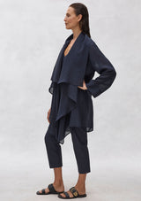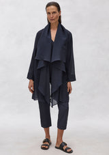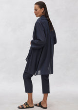 Crafted in Mela Purdie's signature Vapour, a breathable opaque weave and soft textured fabrication, The Plaza Duster combines a soft front opening and fold over shawl for lightweight seasonal layering.