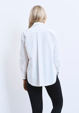 The Mela Purdie Victoria Shirt. is crafted from a stretch fabrication, Cotton Memory. This fabrication is produced from special memory yarn technology for optimal shape and fit. The Victoria Shirt features long sleeves with button cuffs, front feature pockets, button up front and rounded hemline.