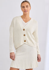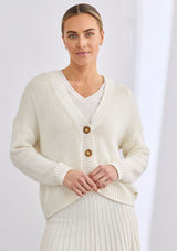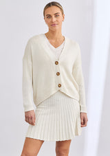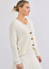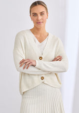 The Addy Cardigan from Mia Fratino features a v-neckline, button front opening and full-length sleeves. The neck, sleeves and hem are detailed with ribbing for added texture. Designed in a relaxed fit, it provides a modern silhouette that seamlessly blends style and comfort. The textured cotton and hemp adds a natural, earthy touch to this mid-weight sweater, making it a versatile addition to your everyday wardrobe.