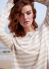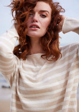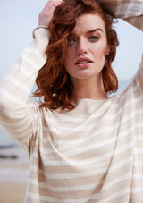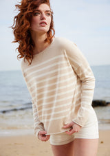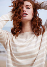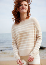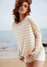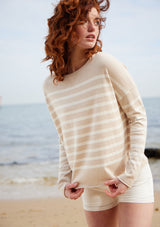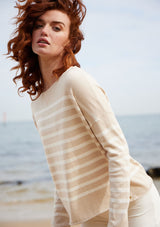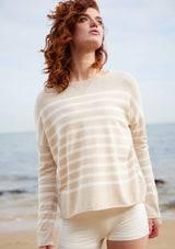 The Como Stripe Crew from Mia Fratino features a crew neckline, drop shoulders, full length sleeves and contrast colour striped detail. Crafted from a premium cotton, silk and cashmere blend fabrication, this classic crew is a lightweight knit for all seasons.