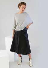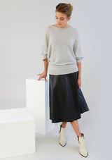 The Eva Boat Neck by Mia Fratino features an elegant boat neck with relaxed dolman style sleeves and ribbed hem detail. The tapered hem gives a flattering and unique silhouette at the hip. Crafted from 100% Cashmere, this lightweight knit is comfy enough for the couch and timeless enough for everyday wear.