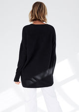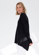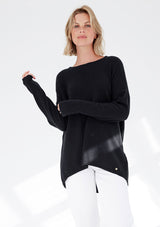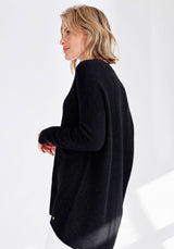 The Scoop Neck sweater from Mia Fratino has a unique rounded shape curving to the front and scooping low at the back. This 100% Mongolian Cashmere long line classic features a horizontal knit texture on the back. Cut from a relaxed wide-block, this style is designed for maximum comfort.