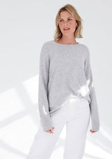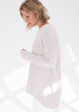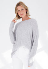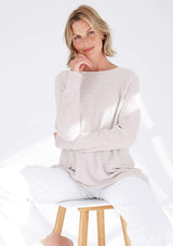 The Scoop Neck sweater from Mia Fratino has a unique rounded shape curving to the front and scooping low at the back. This 100% Mongolian Cashmere long line classic features a horizontal knit texture on the back. Cut from a relaxed wide-block, this style is designed for maximum comfort.