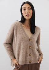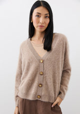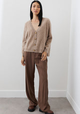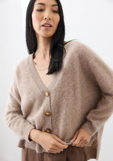 The Mae Cardi from Mia Fratino features a V-neckline, button through opening, full length sleeves and a hemline that steps down to a slightly longer length at the back. Crafted from 100% brushed cashmere and finished with a technique that makes this sweater look as soft as it feels.
