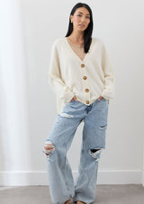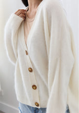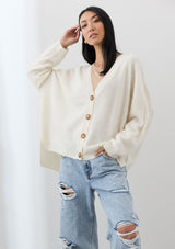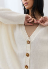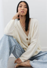 The Mae Cardi from Mia Fratino features a V-neckline, button through opening, full length sleeves and a hemline that steps down to a slightly longer length at the back. Crafted from 100% brushed cashmere and finished with a technique that makes this sweater look as soft as it feels.