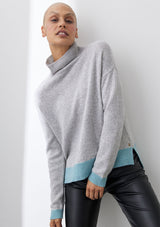 The Tessa Mock Neck from Mia Fratino is characterised by its tipped cuffs and hemline. It features a funnel neck, full length sleeves and ribbed details. Made from 100% cashmere, this super soft garment is heaven to touch, lightweight and super warm.