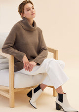 The Zeta Raglan Roll Neck by Mia Fratino features a loose ribbed roll neck, raglan sleeves finished with ribbed detail on cuffs and hem. Made from 100% Mongolian Cashmere, this ultra soft sweater is made to last and suited for everyday wear.