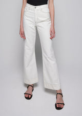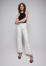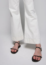 P9634Introducing the Anita Flare, featuring a High Rise, Straight Fit & Full length Flared Hem. Alongside Vintage Nickel hardware, Contrast stitching, Clean finishes through the body.