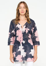 The Poppy Top from One Season features a soft V neckline with button fastening at the bust, pintuck pleated detail, elbow length sleeves and is finished with delicate raw ruffles on the neckline and sleeves. Crafted from a breathable cotton, this top complements all body shapes with a flattering, looser silhouette that is ideal for everyday wear.