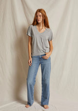 The Hendrix Basic V-Neck by Perfect White Tee features a V- neck, short sleeves and a relaxed body silhouette. This t-shirt is crafted from 100% soft cotton and is a perfect addition to your summer wardrobe.