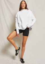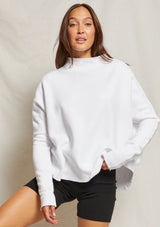 The Morrison Fleece Mock Neck from Perfect White Tee exudes comfort and style. With its raw edge details, full length sleeves, and mock neckline, you'll find yourself lounging in total coziness all day long. Crafted from 100% premium cotton, its oversized silhouette provides all-day comfort.
