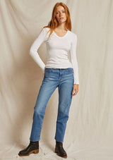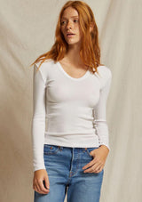 Perfect White Tee Robyn U Neck Rib Long Sleeve