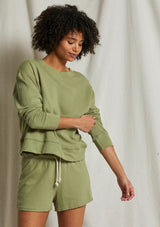 T70The Tyler Pullover by Perfect White Tee features a crew neck, drop shoulder with full length sleeves and a relaxed fit. This pullover is crafted from a Vintage Cotton French Terry fabrication which is lightweight and breathable.