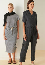 Made from 100% linen, the Aria Stripe Skirt is the perfect throw on style with a drawstring waist, side pockets and drawstring detail on the side hem; designed by Australian designer POL Clothing.