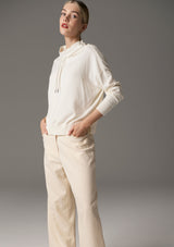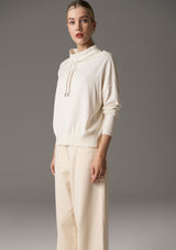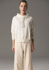 The Beech Drawcord Knit by POL Clothing features a wide funnel neckline with drawcord and bracelet length sleeves with ribbed detail at cuffs and hem. This relaxed fit top is made from a cotton and cashmere blend and is ideal for spring layering.